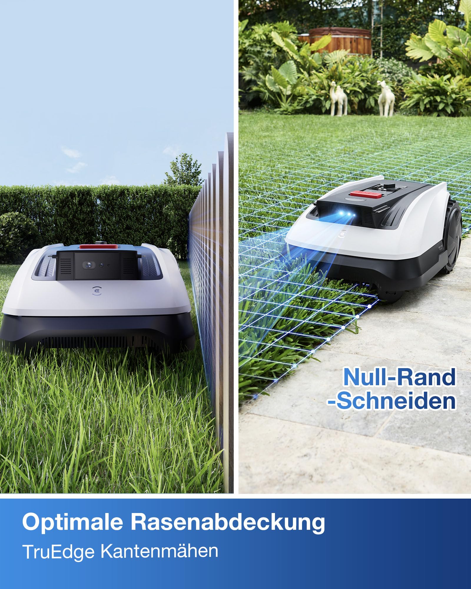 - Präzise Lidar-unterstützte RTK + Vision Navigation: Der Roboter erreicht eine ultra-präzise Positionierung von nur 2cm. Im Vergleich zu anderen RTK-Technologien kann er bis zu 40 Satelliten auf 80% mehr Signalbändern empfangen, bietet eine 4x höhere Verbindungsgeschwindigkeit und eine 30% höhere Stabilität im Schatten von Bäumen oder Gebäuden. In Bereichen mit eingeschränkter Signalqualität sorgt das visuelle Positionierungssystem dafür, dass die Mähpfade kontinuierlich und präzise bleiben, für eine vollständige Rasenpflege.