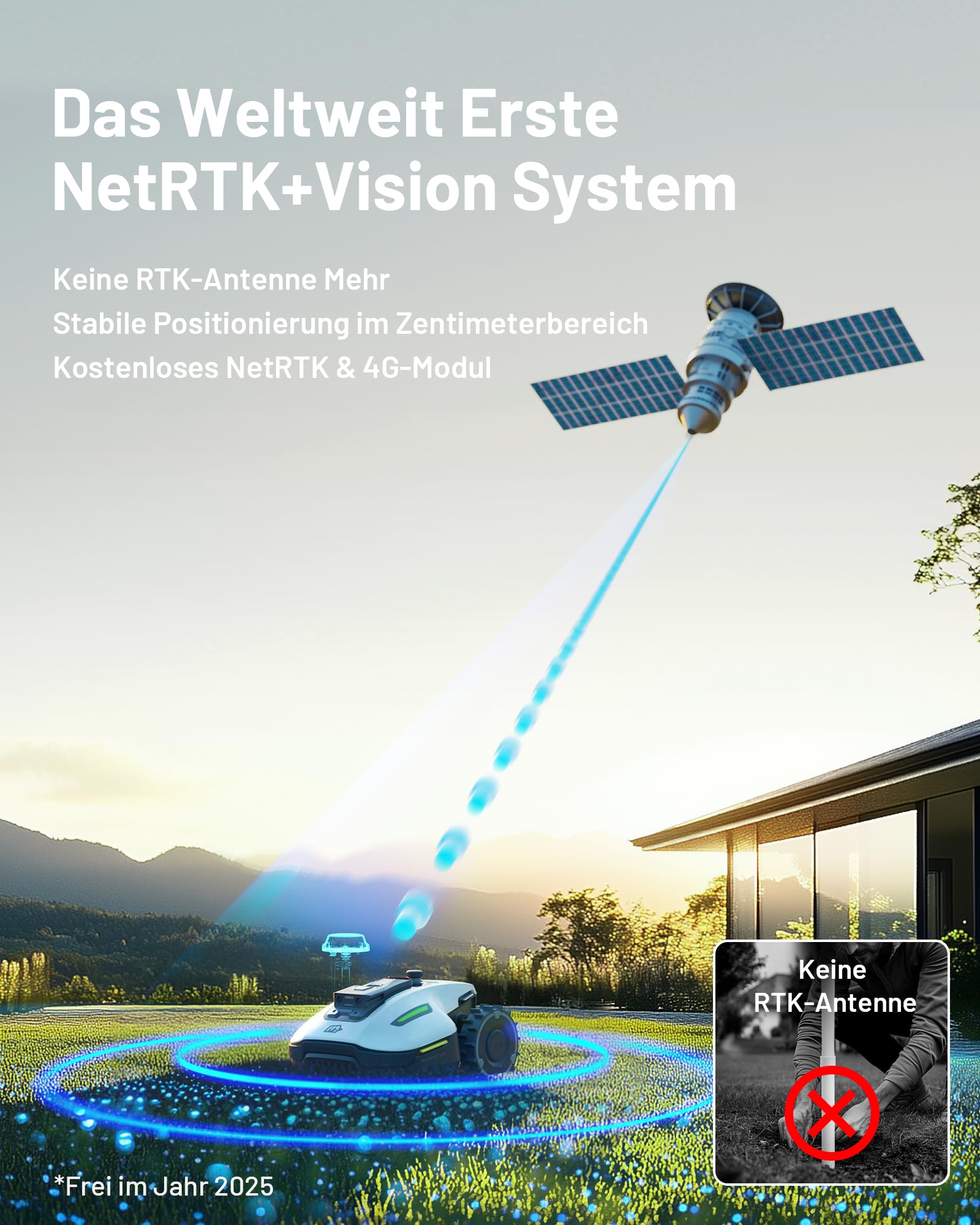 - Das Erste NetRTK+Vision System der Welt: Die Installation einer RTK-Station ist nicht erforderlich - es ist sofort einsatzbereit. Das NetRTK- und das 4G-Modul, die beide bis 2025 kostenlos genutzt werden können, gewährleisten eine stabile Positionierung im Zentimeterbereich, selbst unter Bäumen oder in engen Passagen. Und wir bieten die RTK-Station weiterhin kostenlos in der Box an.
