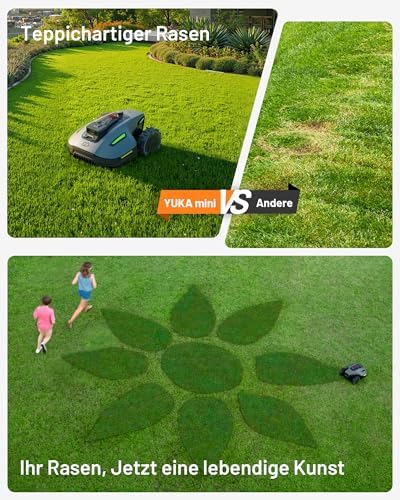 - Dreifache Steigerung der Schneideffizienz: Der YUKA mini verfügt über ein schwimmend gelagertes Messer mit einer Schnittbreite von 190 mm, das eine hohe Effizienz gewährleistet und mit einer Ladung bis zu 270 m² Rasen mähen kann. Außerdem lässt sich die Schnitthöhe leicht an Ihre Bedürfnisse anpassen.