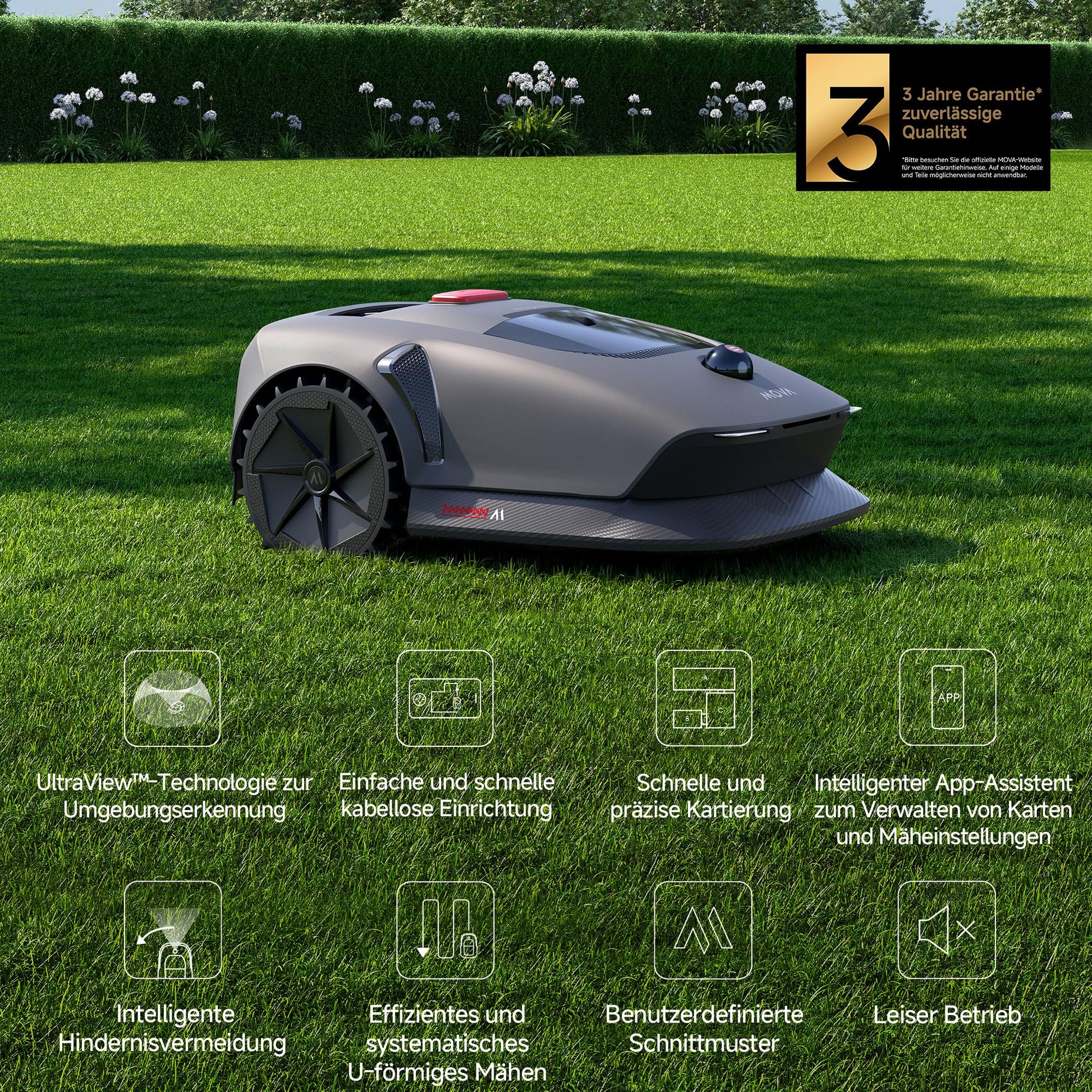 - [Intelligente Hindernisvermeidung] Der MOVA 600 nutzt die UltraView-Technologie und fortschrittliche intelligente Algorithmen, die für den Outdoor-Einsatz entwickelt wurden, um normale Gartenobjekte oder Haustiere innerhalb der festgelegten Grenzen zu erkennen und sie zu vermeiden, um einen sichereren Betrieb zu gewährleisten